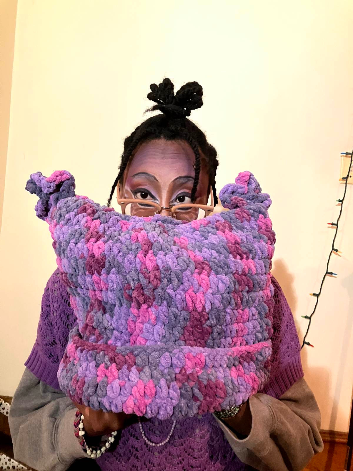 Keep warm with this nostalgic Chowder crochet beanie made with blanket yarn • Comes in a large size for big hair & heads • machine washable & dryer • design by Stitchinwithliz